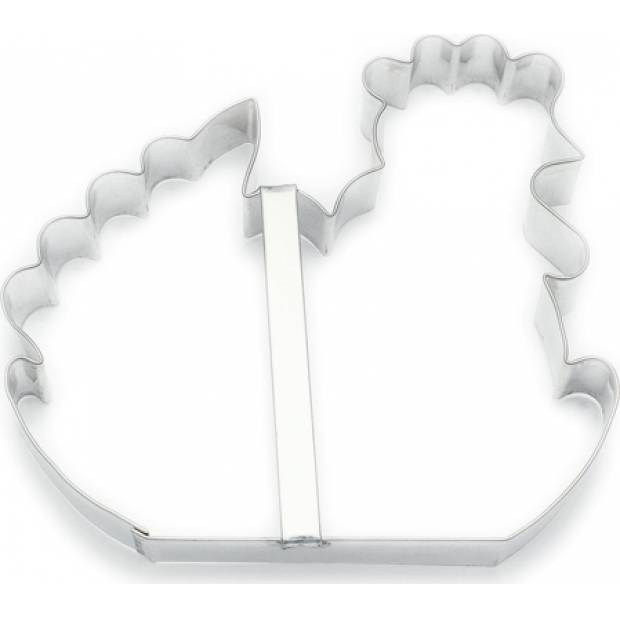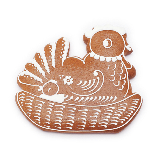 Ausstechform für Pfefferkuchenteig in Form eines Huhns auf einem Körbchen. Hergestellt aus hochwertigem vernickeltem Blech. Nachdem Sie die Form verwendet haben, spülen Sie sie mit Wasser ab und trocknen Sie sie. Verwenden Sie keinen Geschirrspüler zum Reinigen der Form. In der Packung finden Sie auch ein Rezept für Lebkuchen.