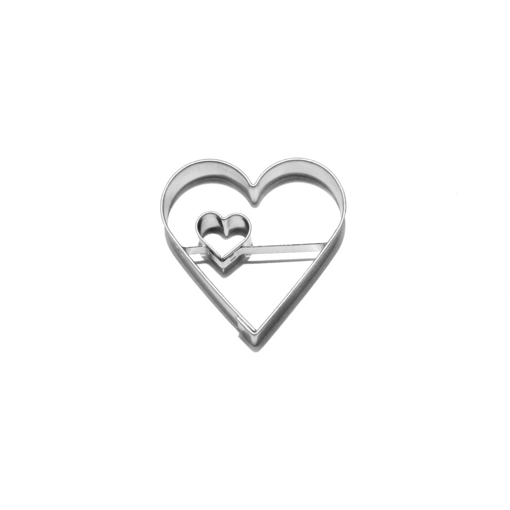 Ausstechform für Plätzchen in Herzform mit ausgeschnittenem kleinen Herzen