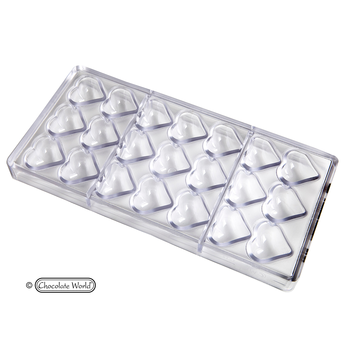 Polykarbonatformen Chocolate World werden professionellen Chocolatiers weltweit verwendet. Chocolate World ist weltweit führend auf dem Markt für polykarbonatformen aus Schokolade für professionelle Chocolaterien und bietet das höchste Standard-sortiment an Formen weltweit. Jede Form wird in Belgien unter Verwendung hochpräziser Werkzeuge gemäß den Produktionsnormen zertifizierter ISO und menschlicher Qualitätskontrolle hergestellt. Die Polykarbonatform ermöglicht die Herstellung perfekter Schokolade. Diese hochwertige europäische Form ist einfach zu verwenden, Ihre Schokolade wird eine glänzende und glänzende Oberfläche haben und sich leicht herausnehmen lassen. Um bunte Schokoladenstücke zu erhalten, tragen Sie die Form mit einer dünnen Schicht farbigen Kakaobutters ein, bevor Sie die Schokolade einfüllen. Das Design dieser Form ermöglicht es, perfekte Formen mit glatt bearbeiteten Linien zu formen.