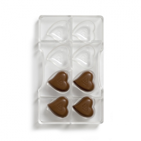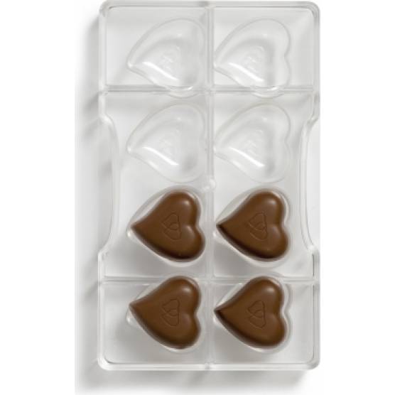 Transparente Form mit Platz für 8 Herzen, dank der Sie köstliche Schokolade herstellen können. Da diese Form Temperaturen von -10 bis +50 Grad aushält, kann sie auch verwendet werden, um lustige Eiswürfel zu machen. Ein Stück Obst, ergänzt durch Wasser, erzeugt einen köstlichen, hübschen Snack an einem warmen Sommertag. Die fertigen Produkte lassen sich aus dieser Polycarbonat-Form einfach entfernen. Es handelt sich um ein hochwertiges, vollständig waschbares Produkt. Die Abmessungen der Herzen betragen 39,7 mm x 39,2 mm.
