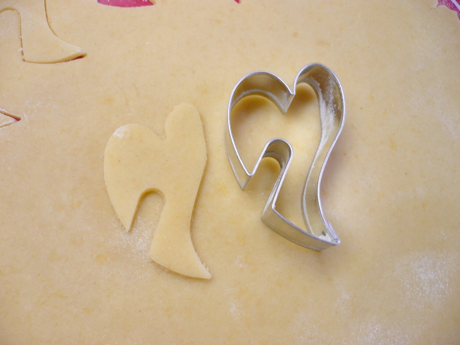 Mit diesem Ausstecher lässt sich ein unregelmäßiges Herz mit den Maßen ca. 6 x 4 cm herstellen. Man kann es sowohl aus süßem Teig zum Aufhängen am Becher als auch aus salzigem Teig herstellen, als Begleitung zu verschiedenen Salaten und kalten Speisen, serviert in einer Schüssel. Ich empfehle entweder, aus etwas stärker ausgerolltem Teig auszustechen, oder zwei Herzchen mit Marmelade oder gegebenenfalls einer Creme zusammenzukleben. In diesem Fall lege ich jedoch die Hälfte der ausgestochenen Herzen aus dem Gesamtvolumen auf das Backblech verkehrt herum. Die Herzen sehen hübsch aus, sie eignen sich nicht nur für Valentinstag, sondern auch für andere Anlässe. Auf dem Becher halten sie gut und fallen nicht herunter. Von mir aus kann ich den Ausstecher empfehlen und ich glaube, dass ein unkonventionell aufgehängter Keks jeden freut. M.F.