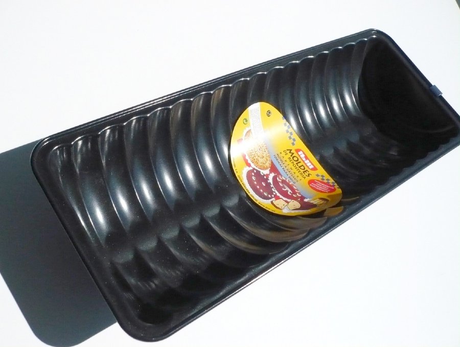 Praktisches Produkt mit einer Länge von 30 cm, das mit einer Höhe von 5,5 cm beeindruckt. Halbovalförmige Form. Die Form verfügt über eine antihaftbeschichtete Oberfläche, was einen sehr einfachen und hochwertigen Backprozess sowie ein anschließendes Auslösen gewährleistet. Die Form lässt sich in die Spülmaschine geben.