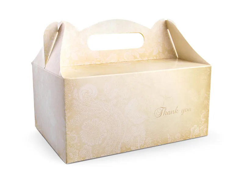 Bieten Sie Ihren Gästen kleine Süßigkeiten, Kuchen oder Gebäck als Dankeschön für ihre Anwesenheit oder als Geschenk auf Ihrer Hochzeit an. Dafür dienen Packungen mit 10 rechteckigen Kästchen, verziert mit der Aufschrift Thank you. Sie können sie leicht mit Ihrer eigenen Botschaft verzieren. Versuchen Sie, darin Ihre hausgemachten Schokoladen oder Kekse zu verpacken, um die naschhaften Zungen Ihrer Freunde zu erfreuen. Abmessungen nach dem Zusammenbau: 19 x 14 cm x 9 cm.