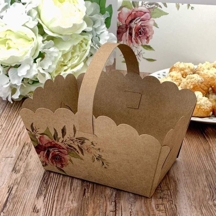 Wundermariger Hochzeitskorb mit Henkel eignet sich für Hochzeitsmitteilungen, Süßigkeiten und Gebäck. Er besteht aus recyceltem Papier, das eine Zulassung für den direkten Kontakt mit Lebensmitteln hat. Der Korb wird in zusammengerolltem Zustand geliefert, seine Montage ist jedoch sehr einfach. Abmessung: 13 x 9 x 9,5 cm
