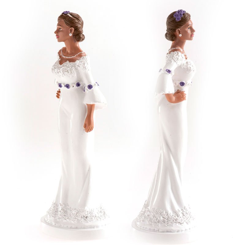 Elegante festliche Dekoration ist ideal zum Verzieren von Hochzeitstorten. Die Hochzeitsfigur ist eine einfache und elegante Lösung zum Verzieren von Torten. Die Haupt- und einzige Figur dieser aus Harz gefertigten Dekoration ist eine Dame in sehr romantischen Kleidern. Sie zeichnet sich durch einen spontanen, lustigen und eleganten Stil aus. Sie erfüllt alle Anforderungen europäischer Normen und ist für den Lebensmittelkontakt geeignet. Das Produkt ist für den professionellen Einsatz in Konditoreien geeignet. Diese essbare Dekoration ist wiederverwendbar, Sie können sie als Erinnerung an Ihren Hochzeitstag aufbewahren. Höhe 16 cm.