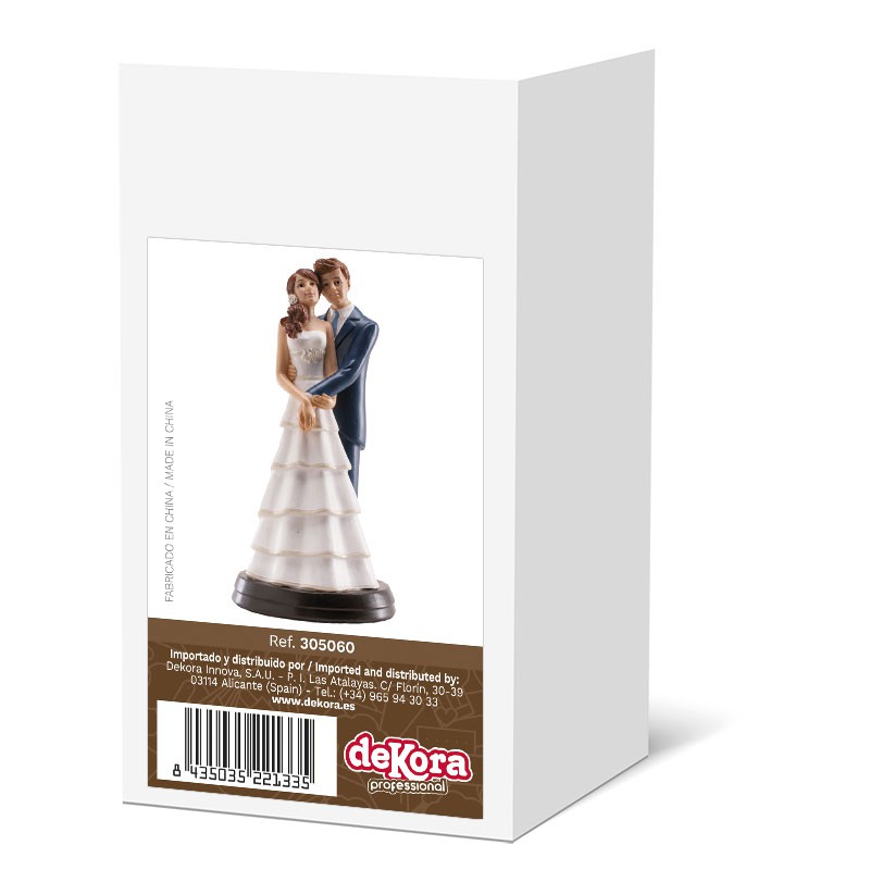 Elegante Festdekoration ist ideal zum Dekorieren von Hochzeitstorten. Die Hochzeitsfigur ist eine einfache und elegante Lösung zum Dekorieren von Torten. Die Hauptfiguren dieser dekorativen Figur aus Harz sind das Brautpaar in einer zärtlichen Umarmung. Sie zeichnet sich durch einen spontanen, lustigen und eleganten Stil aus. Sie erfüllt alle Anforderungen europäischer Normen und ist lebensmittelecht. Das Produkt eignet sich für den professionellen Einsatz in Konditoreien. Diese unersättliche Dekoration kann mehrfach verwendet werden, Sie können sie als Erinnerungsstück an Ihren Hochzeitstag aufbewahren. Höhe 18 cm.