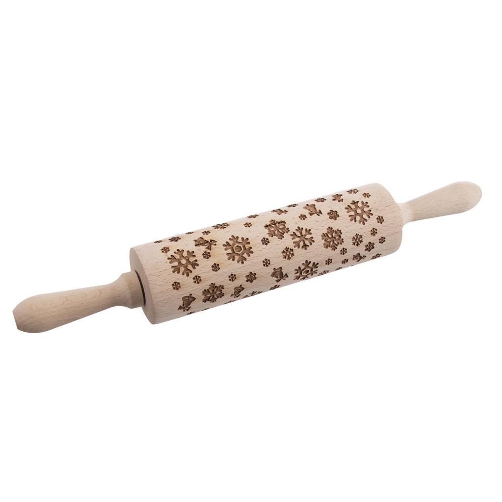Holzrolle wird zu einem unentbehrlichen Hilfsmittel bei der Zubereitung verschiedener Teigarten für Weihnachtsplätzchen, Pizza oder verschiedene backwaren. Hat ein dekoratives Muster. Länge 38 cm.