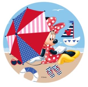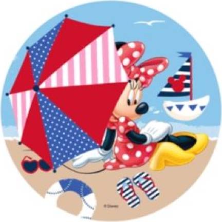 Pevná, kulatá jedlá oplatka na vaflový dort s oblíbeným motivem Mickey a Minnie. Potisk na oplatce byl proveden pomocí certifikovaných jedlých potravinářských inkoustů. Výtisk byl proveden na specializované tiskárně. Barva oplatky se může mírně lišit od grafického designu (barva oplatky je při aplikaci na hmotu intenzivnější). Průměr oplatky: 21 cm.