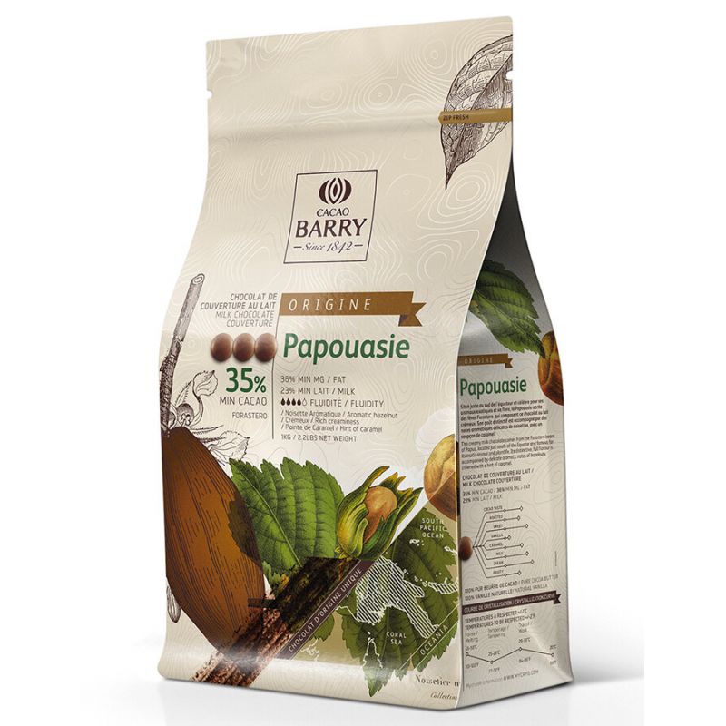 CACAO BARRY Single Origin Papua-Neuguinea Milchschokolade 35% Schokolade ist ein Originalprodukt, das nur aus Kakaobohnen aus einem einzigen Land oder einer einzigen Region entsteht. Dieser einzigartige natürliche Rohstoff verleiht einen außergewöhnlichen Geschmack und ein Aroma, die von Boden, Klima und Umfeld beeinflusst werden, in dem die Kakaobohnen wachsen. Jede Ernte dieser Bohnen kann der resultierenden Schokolade neue Nuancen verleihen, und wie bei Wein kann der Geschmack sich mit jeder neuen Charge leicht unterscheiden.