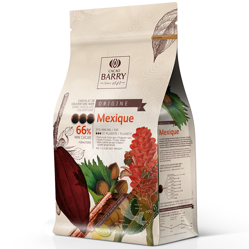 ACAO BARRY Single Origin Mexique Bitterschokolade 66% Kakao wird ausschließlich aus Kakaobohnen eines bestimmten Anbaugebiets hergestellt, was ihr einen außergewöhnlichen Geschmack und Aroma verleiht, die von Boden, Klima und Umgebung abhängen, in der die Kakaobohnen angebaut wurden. Diese Bitterschokolade zeichnet sich durch ihren angenehm säuerlichen, wasserähnlichen Geschmack aus, der allmählich in markante würzige Töne mit einer Note von Lakritz übergeht. Sie kann im Geschmack je nach Ernte variieren, ähnlich wie Wein. Die Schokolade ist in Form kleiner dunkler Körner erhältlich und enthält 66% Kakaoanteil, davon 37% Kakaoanteil an Kakaoöl und 27% fettarme Kakaoanteile.