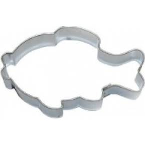 Ausstechform aus verzinntem Blech in Form eines Forellchens.