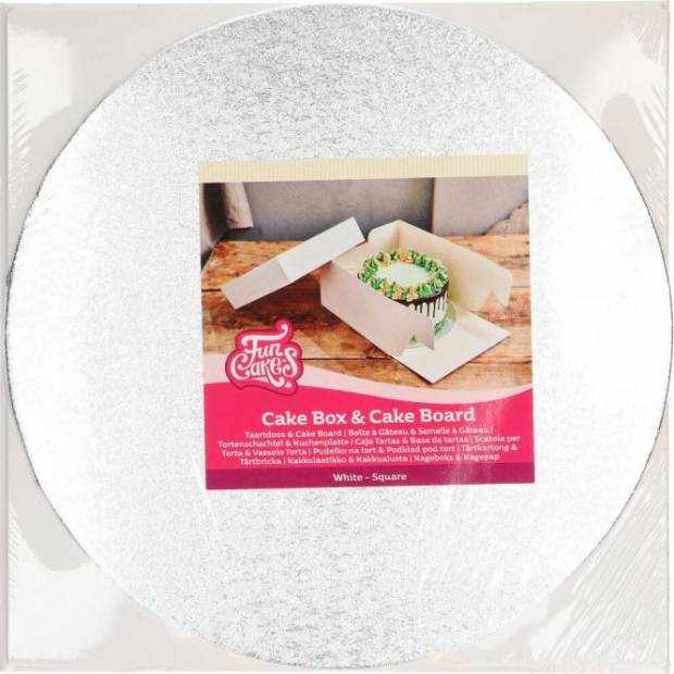 Praktische weiße Kuchenbox von FunCakes mit festem runder Unterlage (3 mm) ist eine ideale Lösung zum Transportieren und Aufbewahren von hausgemachten Kuchen. Die Box besteht aus hochwertigem festen Karton, hat einen separaten Deckel und durch ihre Konstruktion kann sie im normalen Gebrauch wiederholt verwendet werden. Zum Lieferumfang gehört auch eine strapazierfähige runde Unterlage, die dem Kuchen eine stabile Basis bietet und das Handling beim Transport oder Servieren erleichtert.