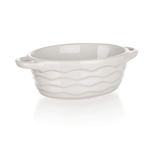 Auflaufform ovaler Form mit praktischen Griffen für eine einfache Handhabung und wellenförmiger Reliefkante. Die Form ist aus hochwertiger Keramik gefertigt, die Wärme perfekt gleichmäßig aufnimmt und anschließend langsam wieder abgibt, wodurch das perfekte Durchbacken der zubereiteten Speisen gewährleistet wird. Keramikformen können in normalen und Mikrowellenherden verwendet werden, sie dürfen jedoch weder auf Gas-, Elektro-, Glaskeramik- noch Induktionskochfeldern verwendet werden. Sie können spülmaschinenfest gereinigt werden.