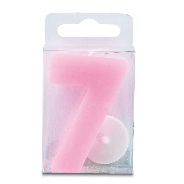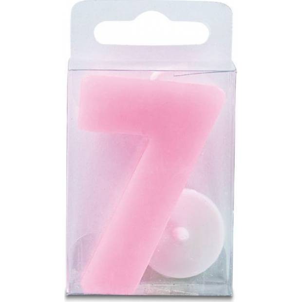 Sternkerze in der Form der Zahl 7, rosa Farbe, Höhe 4 cm. Sie eignet sich vor allem zur Dekoration von Geburtstagskuchen und ähnlichen Backwaren. Die Kerze erfüllt alle Sicherheitsvorschriften.