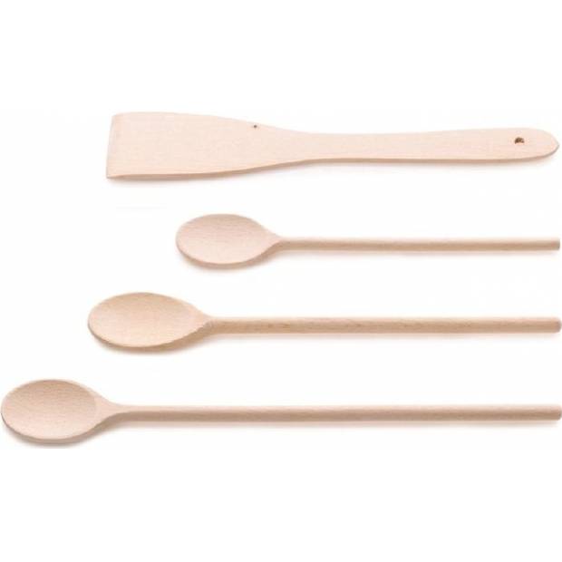 Set aus 4 Kochlöffeln aus hochwertigem Buchenholz. Das Set enthält: 1 x Kochlöffel 25 cm lang, 1 x Kochlöffel 30 cm lang, 1 x Kochlöffel 35 cm lang, 1 x Spachtel 30,5 cm lang. Unverzichtbarer Bestandteil jeder Küchenausstattung. Material: Holz. Farbe: Natur sv
