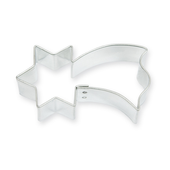 Ausstechform für Plätzchen in Form eines Kometen aus verzinntem Blech.