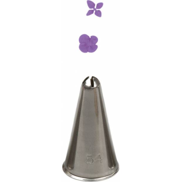Metall-Spitzöffnung für Backkunst Nr. 54 garantiert präzise und einzigartige Dekoration. Die Spitze kann wiederholt mit dem Spritzbeutel verwendet werden. Hergestellt aus Edelstahl; Rückstände von Fett bleiben auf der Oberfläche nicht haften. Nicht spülmaschinengeeignet.