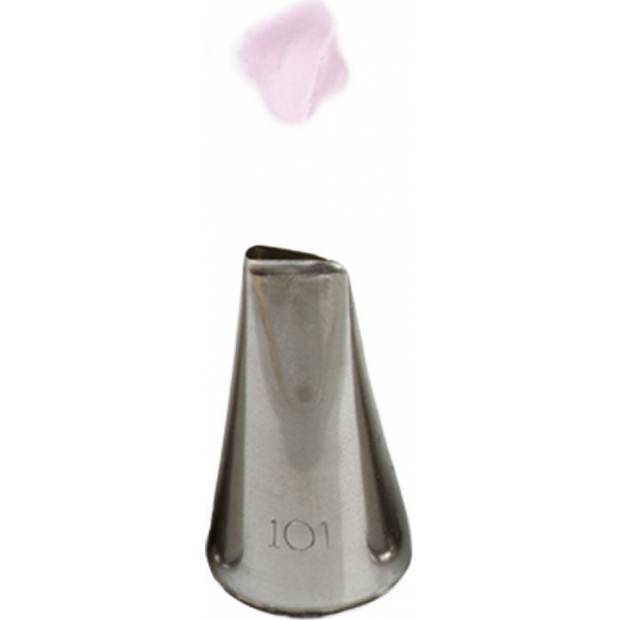 Metall-Spitzöffnung für Zuckerguss Nr. 101 garantiert präzise und einzigartige Dekorationen. Die Spitze kann wiederholt mit einem Spritzbeutel verwendet werden. Sie besteht aus Edelstahl, Fettflecken hinterlassen keine Spuren auf der Oberfläche. Geeignet ist sie nicht für die Spülmaschine.