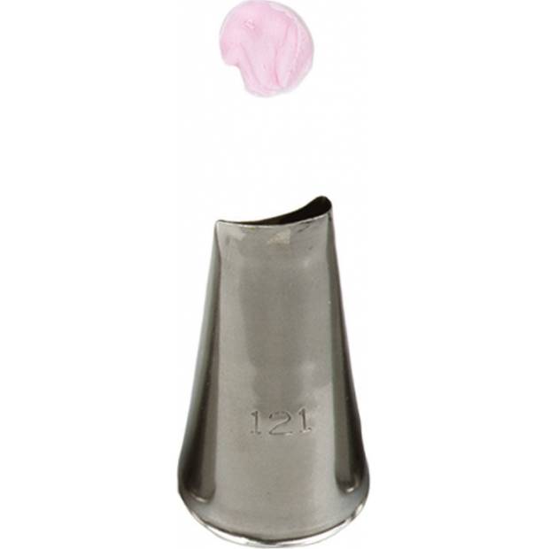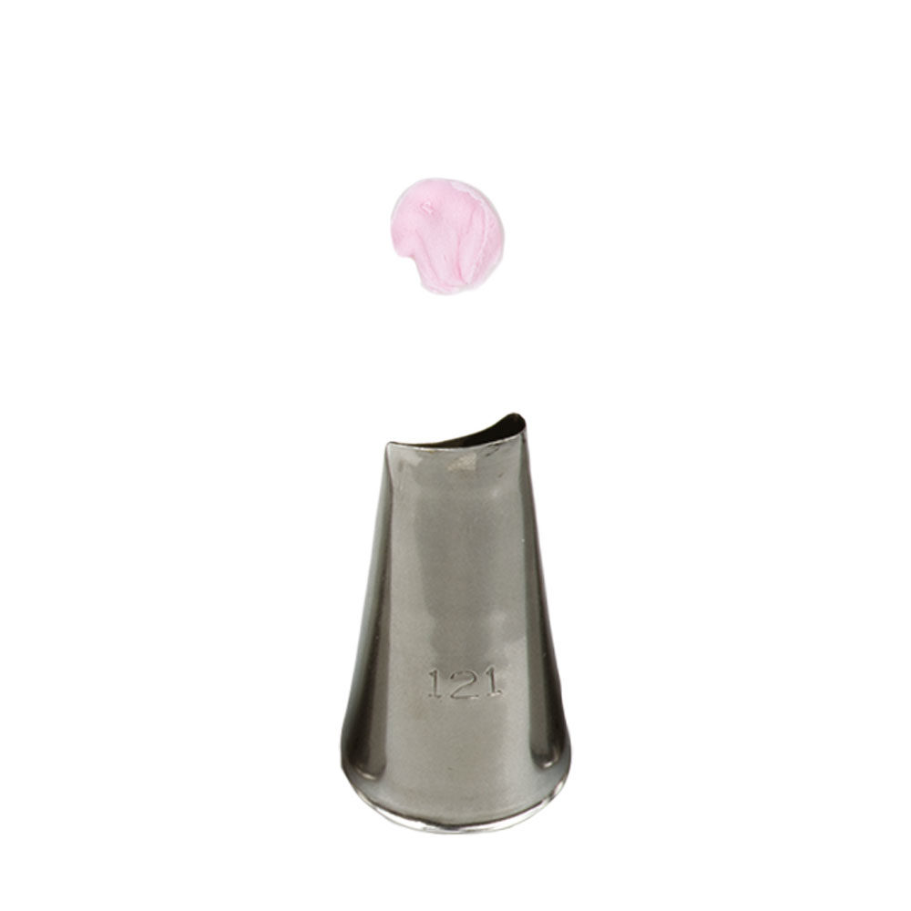 Metall-Spitzverzierungstülle 121 garantiert präzise und einzigartige Dekoration. Die Spitze können Sie wiederholt mit dem Spritzbeutel verwenden. Sie ist aus Edelstahl gefertigt; Fettflecken bleiben auf der Oberfläche nicht zurück. Nicht spülmaschinengeeignet.