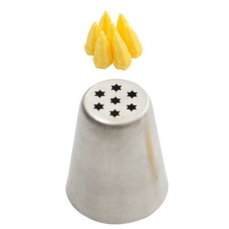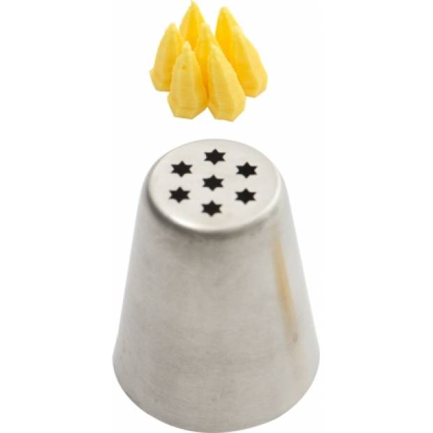 Metall-Backaufsatz für Gebäck mit mehreren Öffnungen 16 Gras, der Ihnen eine präzise und einzigartige Verzierung in Form von Gras oder sogar eines ganzen Rasens garantiert. Die Spitze kann mehrmals mit einem Spritzbeutel verwendet werden. Sie besteht aus Edelstahl, Fettflecken bleiben auf der Oberfläche nicht zurück. Nicht geeignet für die Reinigung in der Spülmaschine.