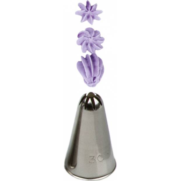 Der Metall-Backspitzenaufsatz 30 formt Ihnen mühelos eine Muschel oder eine Blüte. Die Spitze besteht aus hochwertigem Edelstahl.