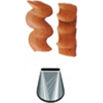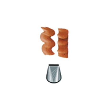 Metall-Pastry-Tülle flach Nr. 45 für das mühelose Erstellen kreativer cremiger Elemente. Die Tülle kann wiederholt mit einem Spritzbeutel verwendet werden. Sie ist aus Edelstahl hergestellt, fettnichtverfärbend. Nicht spülmaschinengeeignet.