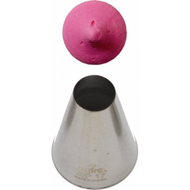 Der Metall-Verzieraufsatz für Tüllen Spitze rund S/P17 garantiert präzente und einzigartige Dekorationen. Die Spitze kann wiederholt mit einem Spritzbeutel verwendet werden. Sie besteht aus Edelstahl; Fettflecken hinterlassen sich nicht auf der Oberfläche. Nicht spülmaschinengeeignet.