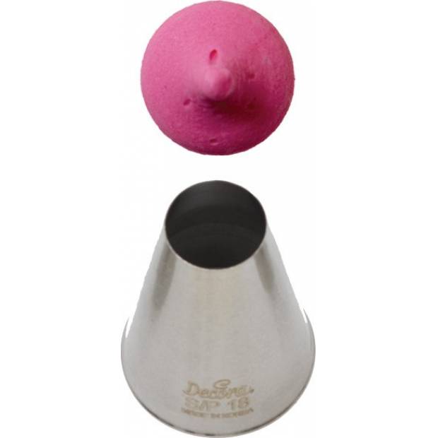 Der runde Metall-Verzierungsaufsatz für Backwerkzeug S/P18 garantiert eine präzise und einzigartige Verzierung. Die Spitze kann wiederholt mit einer Dekorationsspritze verwendet werden. Sie besteht aus Edelstahl, Fettflecken bleiben nicht auf der Oberfläche haften. Spülmaschinenfestigkeit ist nicht gegeben.
