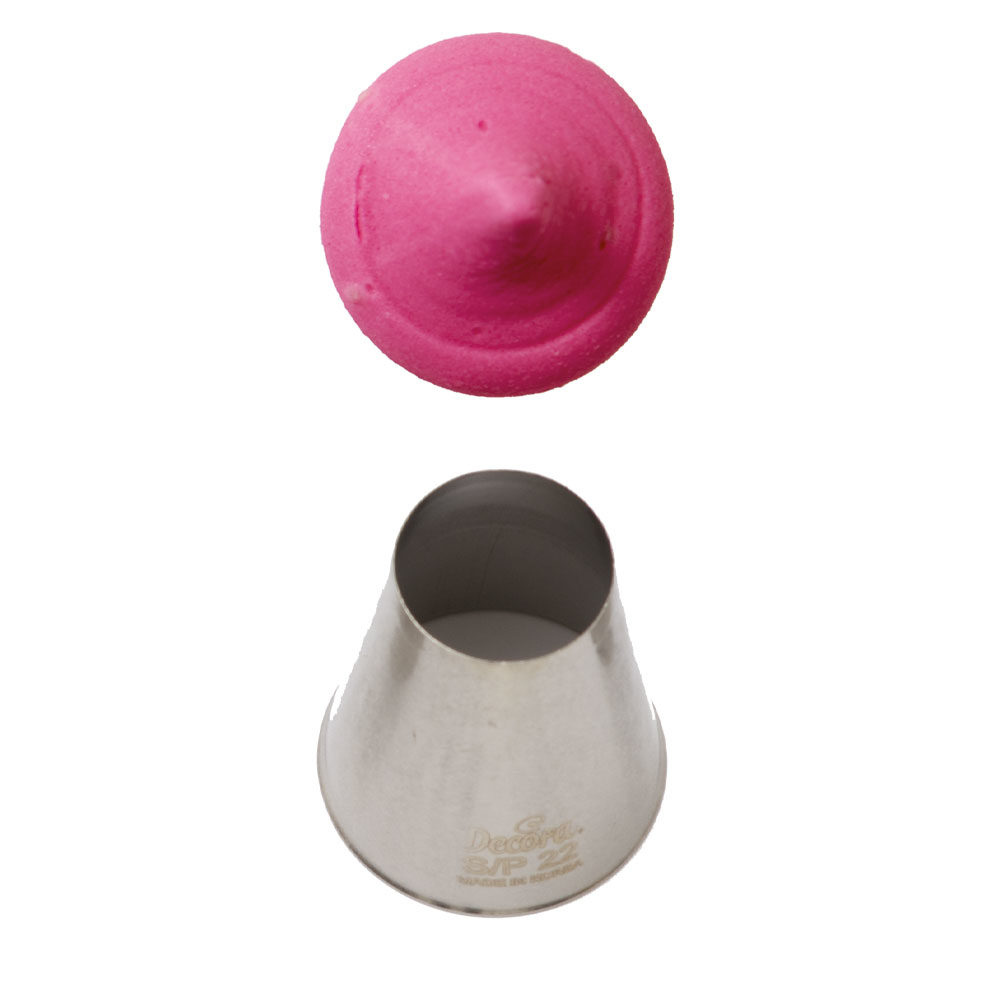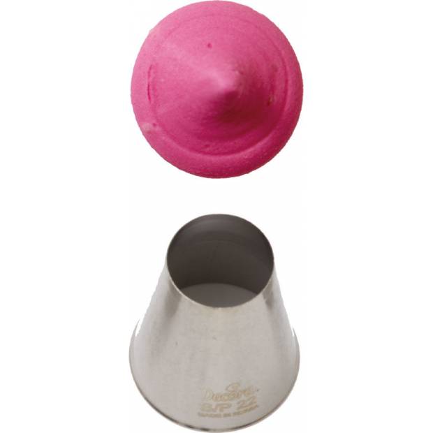 Der runde Metall-Verzierungsaufsatz S/P22 für Spritzbeutel garantiert eine genaue und einzigartige Dekoration. Die Spitze kann wiederholt mit dem Spritzbeutel verwendet werden. Sie besteht aus Edelstahl, Fettflecken bleiben auf der Oberfläche nicht haften. Nicht spülmaschinengeeignet.