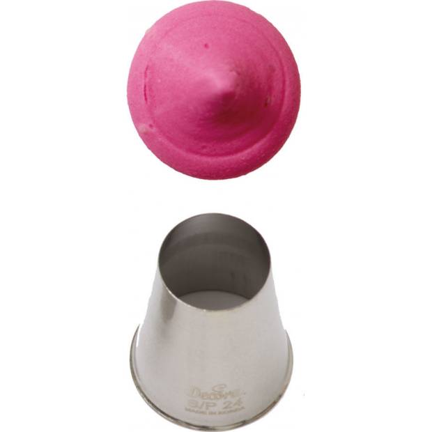 Der Metall-Verzierungsaufsatz für Cake-Decorating rund S/P24 garantiert eine präzise und einzigartige Verzierung. Die Spitze kann wiederholt mit einer Dekorationsspritze verwendet werden. Sie besteht aus Edelstahl, Fettflecken bleiben nicht auf der Oberfläche haften. Für die Spülmaschine nicht geeignet.