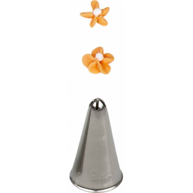 Metall-Pâtisserie-Tüllenspitze, geschnitten 225, mit der Sie garantiert sehr präzelle und einzigartige Dekorationen erstellen. Die Spitze kann wiederholt mit einer Spritzbeutel verwendet werden. Sie ist aus Edelstahl gefertigt, Fettschlieren auf der Oberfläche bleiben nicht haften. Nicht geeignet für die Spülmaschine.