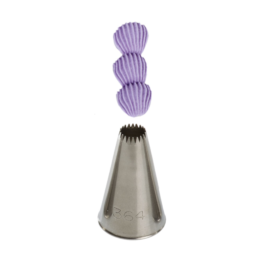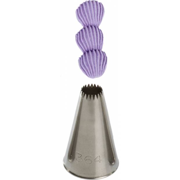 Metall-Pâtisserie-Tüllenkopf geschnitten 364, mit dem Sie garantiert eine sehr präzise und einzigartige Verzierung erstellen. Die Spitze kann wiederholt mit einer Spritztüte verwendet werden. Hergestellt aus Edelstahl, Fettflecken bleiben auf der Oberfläche nicht haften. Nicht geeignet für die Reinigung in der Spülmaschine.