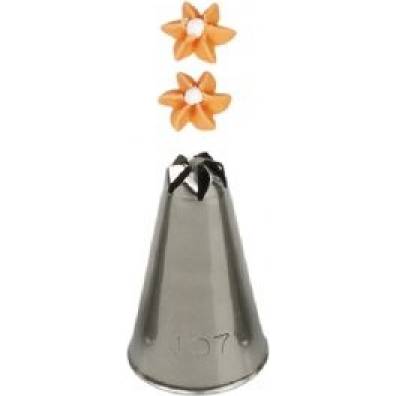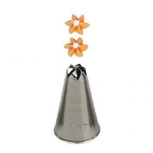 Metallischer Tortenspritzspitzen-Clip 107 garantiert Ihnen eine präzise und einzigartige Verzierung. Die Spitze kann wiederholt mit einer Spritztüte verwendet werden. Sie besteht aus Edelstahl, Fettflecken hinterlassen keine Rückstände auf der Oberfläche. Für die Spülmaschine nicht geeignet.