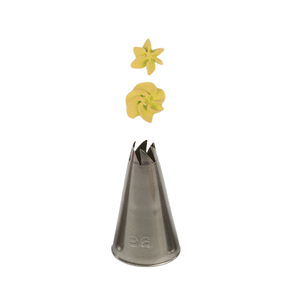 Metall-Spitzspritze für Backwerkzeug Nr. 96 garantiert präzise und einzigartige Dekoration. Die Spitze kann wiederholt mit einem Spritzbeutel verwendet werden. Sie ist aus Edelstahl gefertigt, Fettflecken hinterlassen keine Rückstände auf der Oberfläche. Nicht spülmaschinengeeignet.
