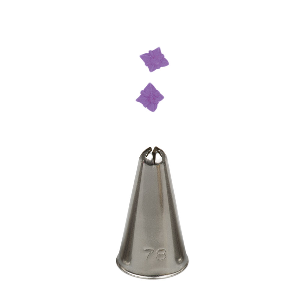 Metall-Spitzverzierungstülle für Torten 78 garantiert präzise und einzigartige Dekorationen. Die Spitze kann wiederholt mit einem Spritzbeutel verwendet werden. Sie ist aus Edelstahl gefertigt, Fettflecken hinterlassen keine Spuren auf der Oberfläche. Nicht spülmaschinengeeignet.