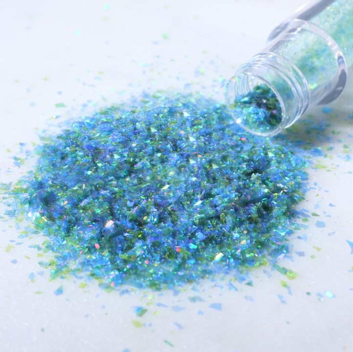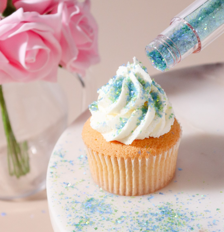 100% essbare, vegane glitzernde Glitzerflocken aus pflanzlichen Farbstoffen. Mit dem Effekt eines Edelsteins.