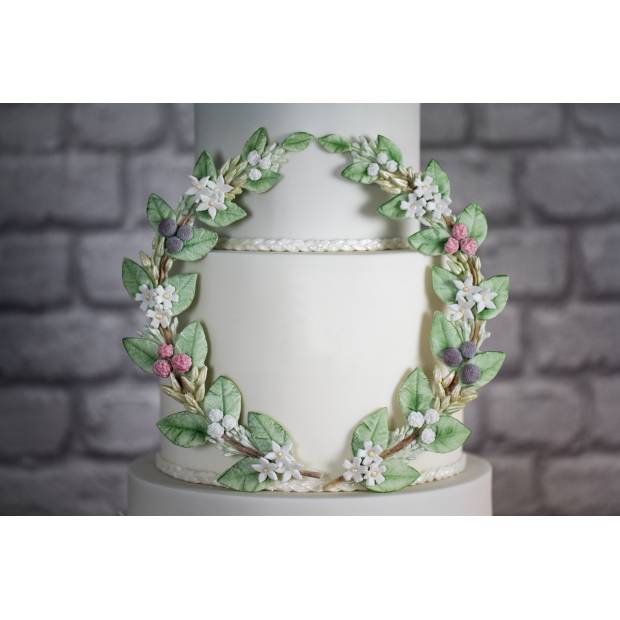 Silikonform zur Herstellung eines Blütenkranzes aus Marzipan.