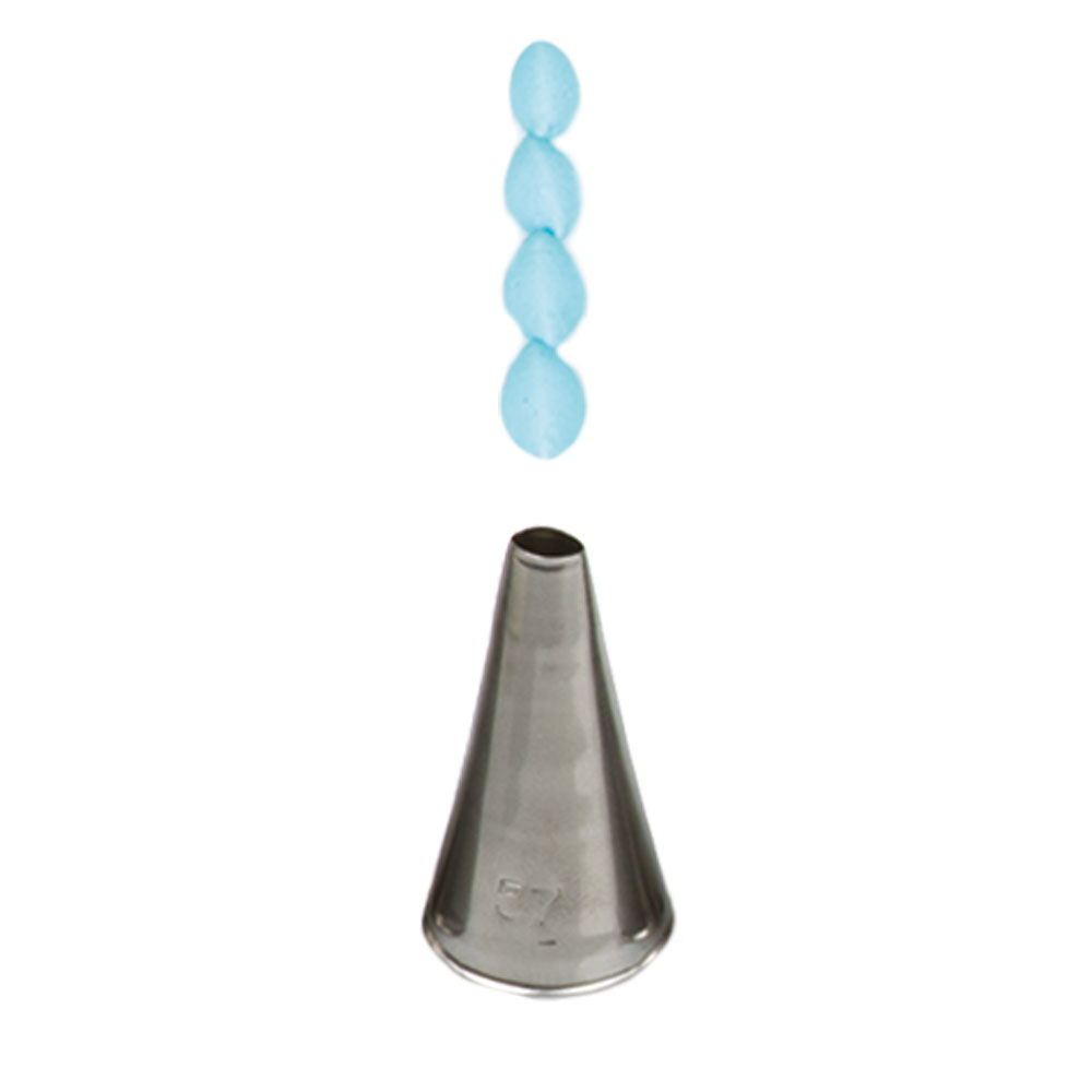 Die runde Metall-Tülle für Backwerk-Dekoration 57 ist aus hochwertigem Edelstahl gefertigt.