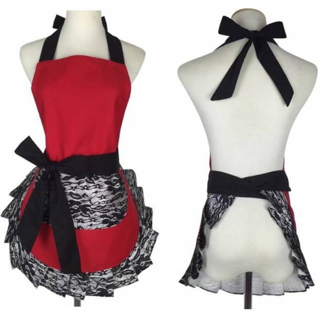 Küchenschürze in schwarz-rotem Design
