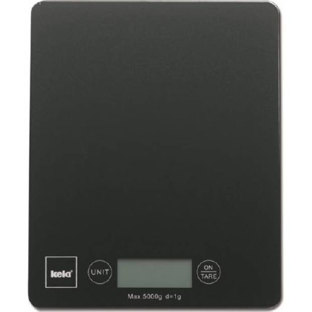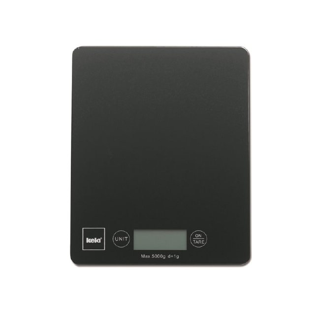 Küchen-Digitalwaage aus schwarzem Glas mit Maßbereich 0 - 5 kg. Die Wägeschärfe beträgt 1 g. Die Waage verfügt über eine Tara-Funktion – während des Wiegens kann auf 0 gestellt werden. Unverzichtbarer Helfer beim Kochen und Backen, geeignet für eine moderne Küche. Material: GlasFarbe: SchwarzMaße: