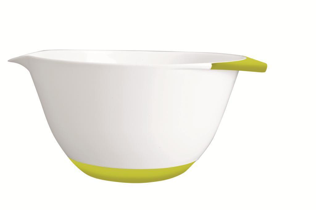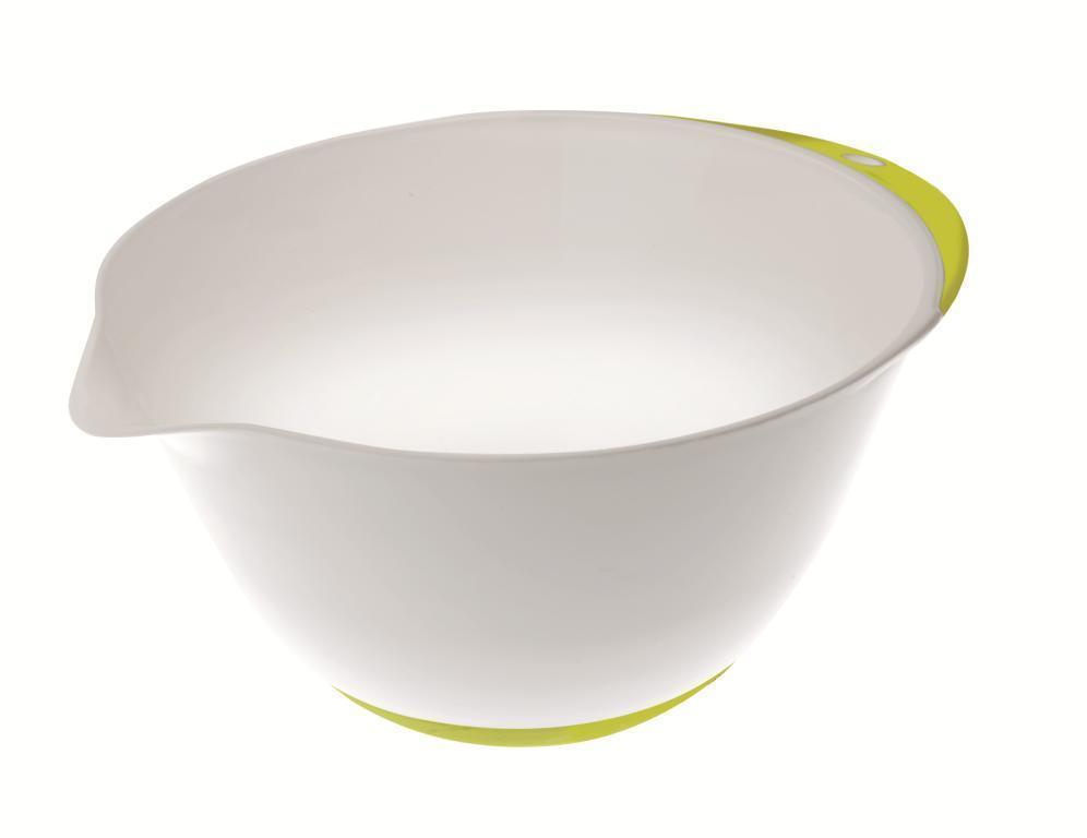 Hochwertiges Plastikmaterial ist der Hauptproduktionsstoff dieser optisch originellen weißen Schüssel. Sie hat eine Kante und einen Boden mit rutschfestem Silikon, wodurch Sie die Handhabung erleichtern. Die Höhe der Schüssel beträgt 11,5 cm und der Durchmesser 18 cm. Die Schüssel verfügt außerdem über einen Trichter. Das Produkt ist spülmaschinenfest.