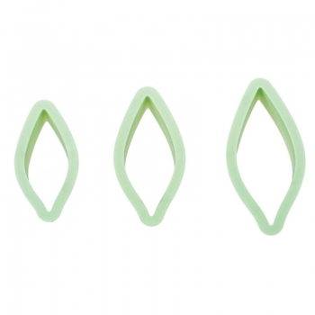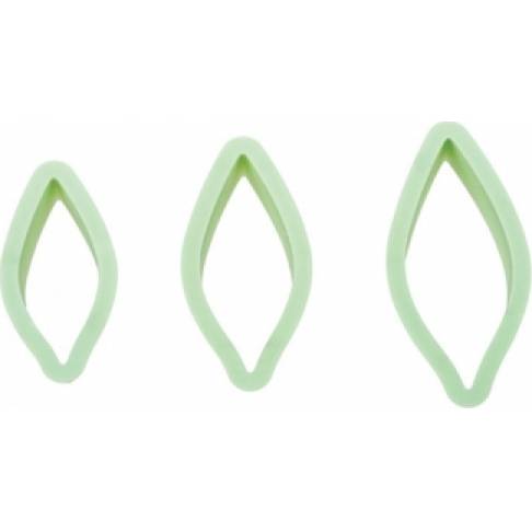 Satz Ausstechformen in Form langer Blätter in verschiedenen Größen. Mit diesem Set lassen sich schlanke, lange Blätter formen. Zum Beispiel geeignet für das Blatt einer Lilie. Kunststoff-Ausstechformen lassen sich einfach reinigen.
