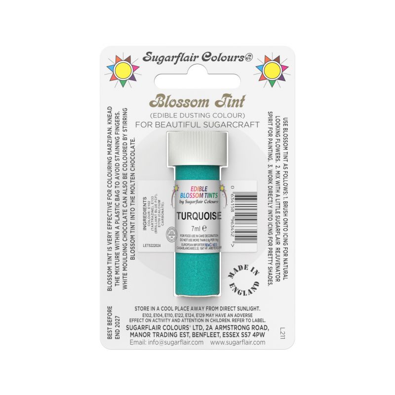 Eßbare Staubfarbe turquoise. Verpackung 7 ml.