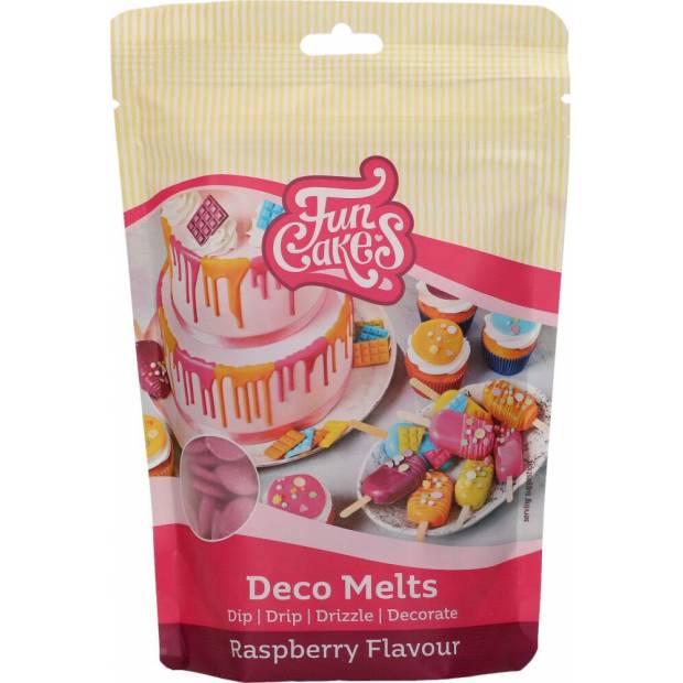 Tauchen Sie ein, träufeln Sie und verzieren Sie mit FunCakes Deco Melts! Verwenden Sie Deco Melts, um wunderschöne Dekorationen auf Kuchen zu machen oder Glasur auf Bonbons und Schokoladenleckereien zu tropfen. Sie können Deco Melts auch schmelzen, um Bonbons, Obst, Kuchen oder Kekse zu tauchen. Die Glasur hat eine köstliche cremige Note weißer Schokolade.