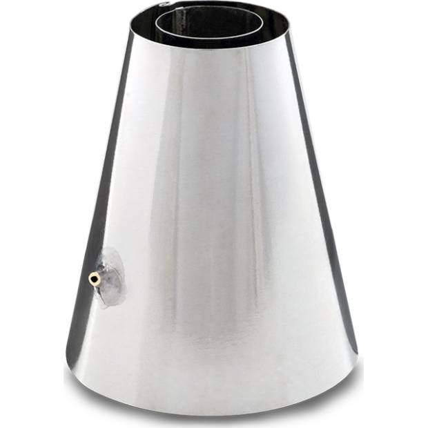 Likörspitze mit einem Durchmesser von 24-36 mm, nicht nur zur Zubereitung des beliebten Desserts. Diese Zweischichtspitze kann beispielsweise bei der Herstellung klassischer Kinderkekse verwendet werden. Hergestellt aus verzinntem Blech, spülmaschinenfest ist sie nicht. Gesamtaußendurchmesser der Verzierungsspitze = 20 mm / Innendurchmesser der Innenhülle 14 mm.