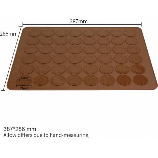 Silikonform für Makronen ermöglicht es Ihnen, auf einmal 48 Stück dieses beliebten Desserts zuzubereiten. Abmessungen 38 x 27 cm.