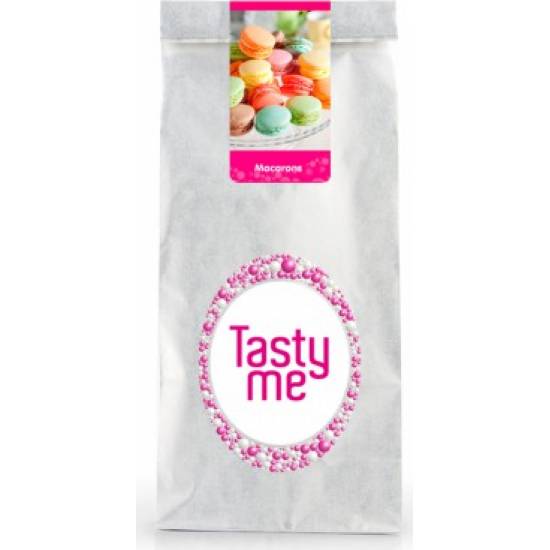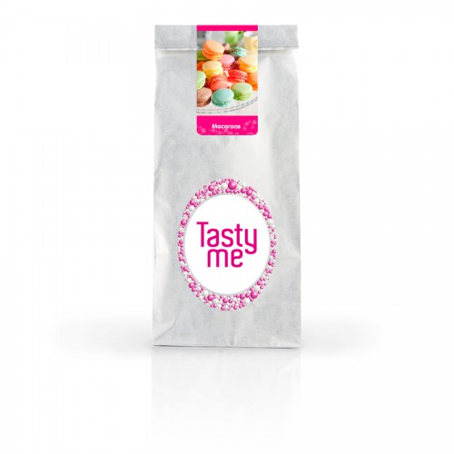 Zutaten für 48 Makronen: 800 g Mischung, 160 g Wasser*. Backblech, Backpapier. Zubereitung: Backofen auf 150 °C vorheizen. Alle Zutaten bei mittlerer Geschwindigkeit 5 Minuten lang schlagen. Auf das Backblech mit Backpapier kleine Hüte von ca. 10 Gramm setzen und mindestens 1 Stunde trocknen lassen. Makronen 25 Minuten backen. Auf eine Makrone 4 Gramm Makronnenfüllung geben und mit einer weiteren Makrone bedecken. *Tipp: Bei bunten Makronen Lebensmittelfarbe hinzufügen, die Wassermenge um die Menge der Lebensmittelfarbe reduzieren.