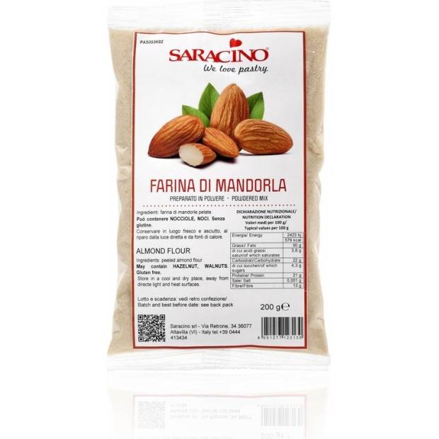 Mehl besteht ausschließlich aus geschälten Mandeln, sorgfältig ausgewählt und dem Mahlprozess unterzogen. Sie hat einen niedrigen Kohlenhydratgehalt, einen niedrigen glykämischen Index, ist sehr reich an Ballaststoffen und Proteinen und verleiht Produkten einen einzigartigen und intensiven Geschmack. Perfekt für süße Backwaren wie Makronen, Mandelpaste oder Marzipan, Biskuit, Blätterteig, Mürbeteig, Cremes und herzhafte Snacks. Sie kann mit anderem Mehl gemischt werden, um Brot und Focaccia herzustellen, sowohl in süßer als auch in herzhafter Variante.