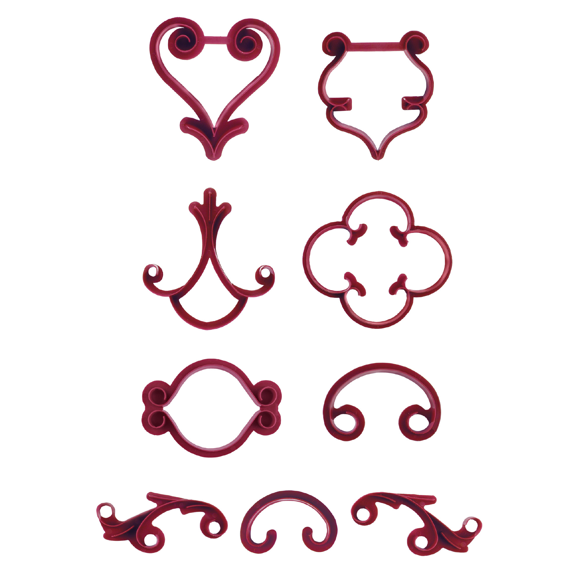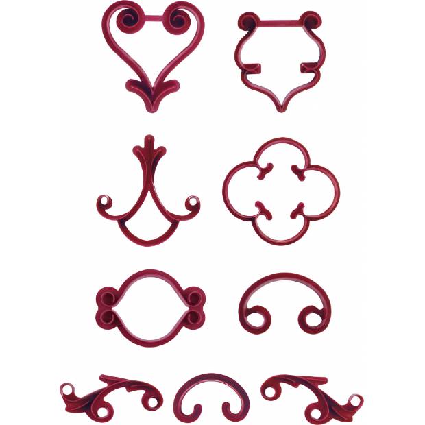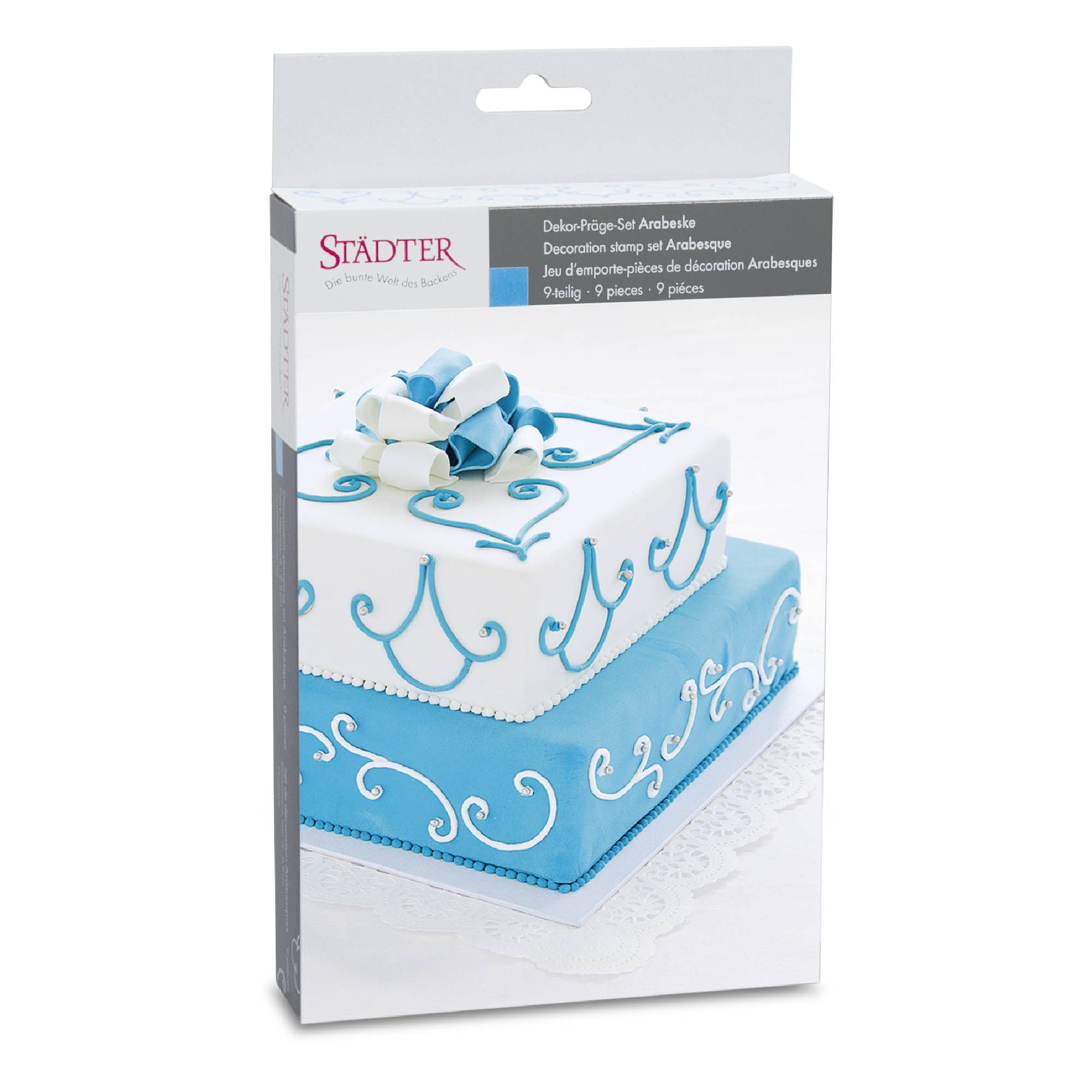 Mit leichtem Druck das Muster in Gumpaste oder Marzipan ausstechen/prägen. Das Reliefmuster lässt sich mit einer Spritztüte nacharbeiten. Mit unseren Dekor-Stempeln erzielen Sie sicher bei jeder Dekoration Erfolg. Wir empfehlen, sie nach dem Gebrauch sofort mit warmem fließendem Wasser abzuspülen. In der Packung 9 verschiedene Ornamente.