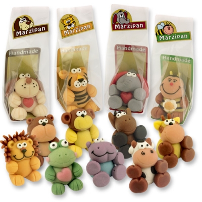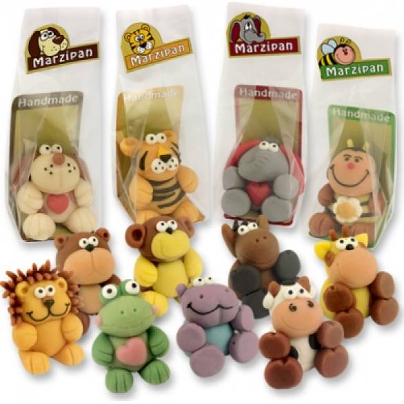 Mandelmasse-Figuren in Tierform erfreuen kleine und große Liebhaber von Marzipan. Diese essbare Dekoration ist eine liebevolle Geschenkidee für Ihre Liebsten. Zur Auswahl stehen mehrere Motive, zum Beispiel Hund, Löwe, Tiger, Nilpferd und mehr. Jede Figur ist in einerCellophan-Beutel verpackt. Abmessungen 38 x 37 x 43 mm, Beutel 40 x 40 x 105 mm (27 g).